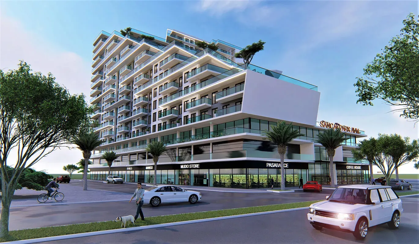 Sancakpark'ın dış cephesi, modern şehir yaşamının dinamizmini yansıtan şık ve çağdaş bir tasarıma sahip. Binanın kendine özgü katmanlı yapısı ve farklı açılardaki terasları, projeye dinamik bir görünüm kazandırıyor. Özellikle binanın alt katında yer alan "Sancakpark AVM" entegrasyonu, alışveriş, eğlence ve sosyal ihtiyaçlarınıza kolayca ulaşım imkanı sunarak projeye ayrı bir değer katıyor. Üst katlardaki yeşil alanlar ve peyzaj düzenlemeleri ise, betonarme yapının içinde nefes alabileceğiniz huzurlu ortamlar yaratıyor.